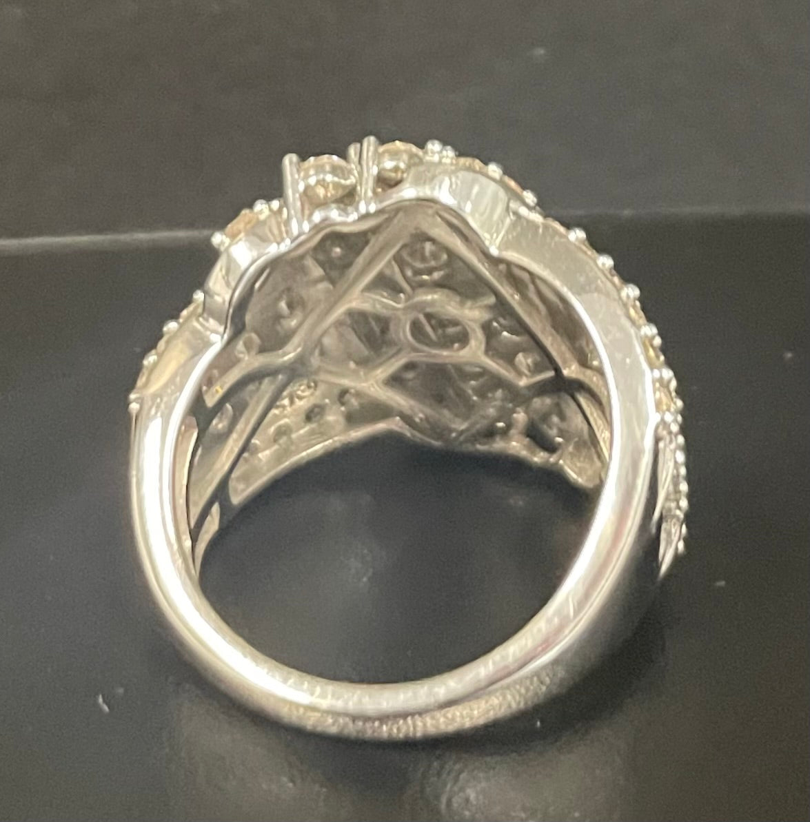 10 K White Gold - Wavy Cocktail Ring - 3 CTW Natural Diamonds